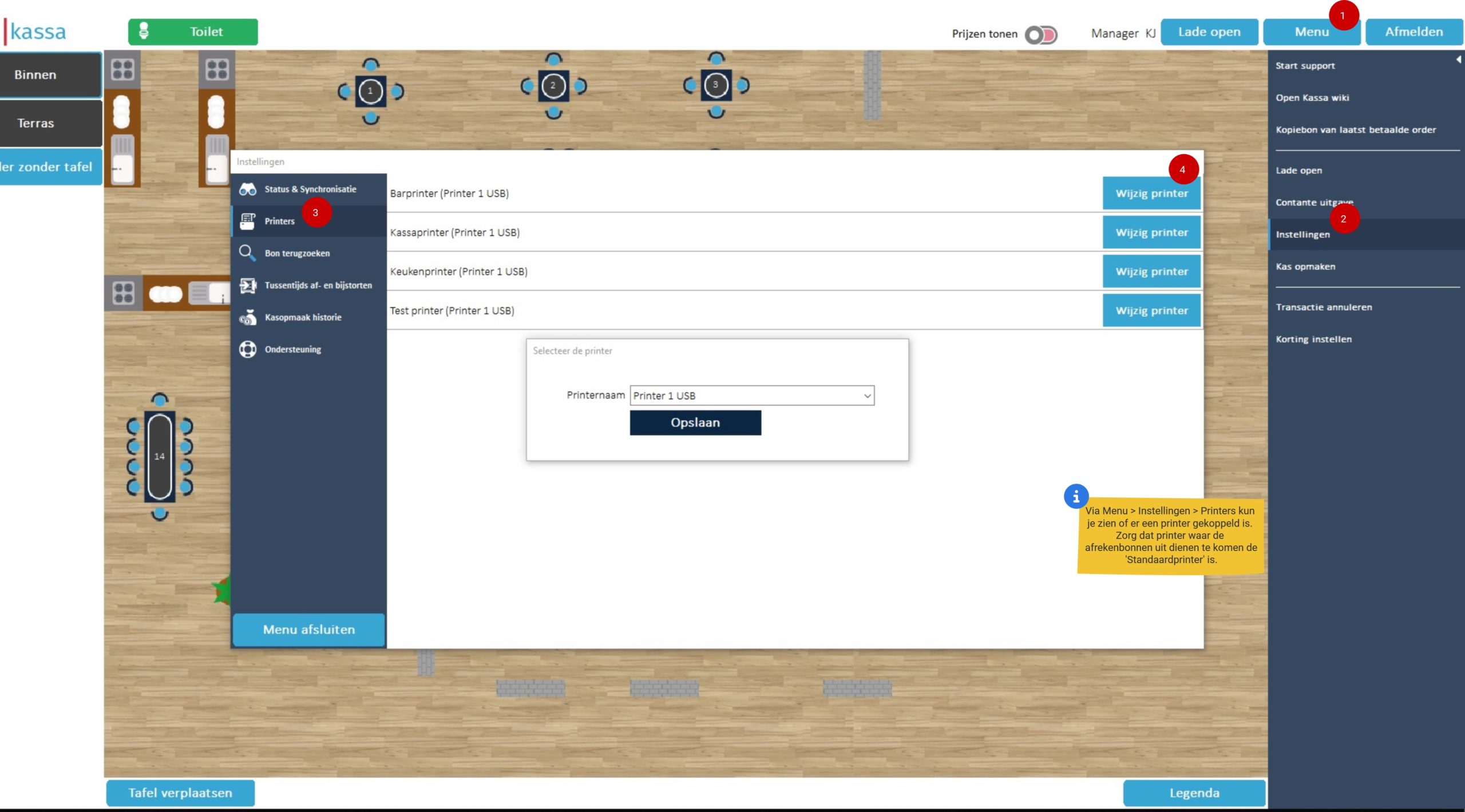 - Staat de juiste printer erbij, check dan deze pagina om te controleren of de printer is toegevoegd aan de beheeromgeving van de kassa.
