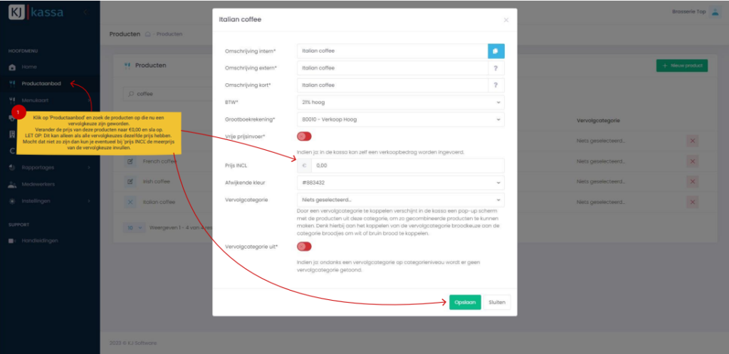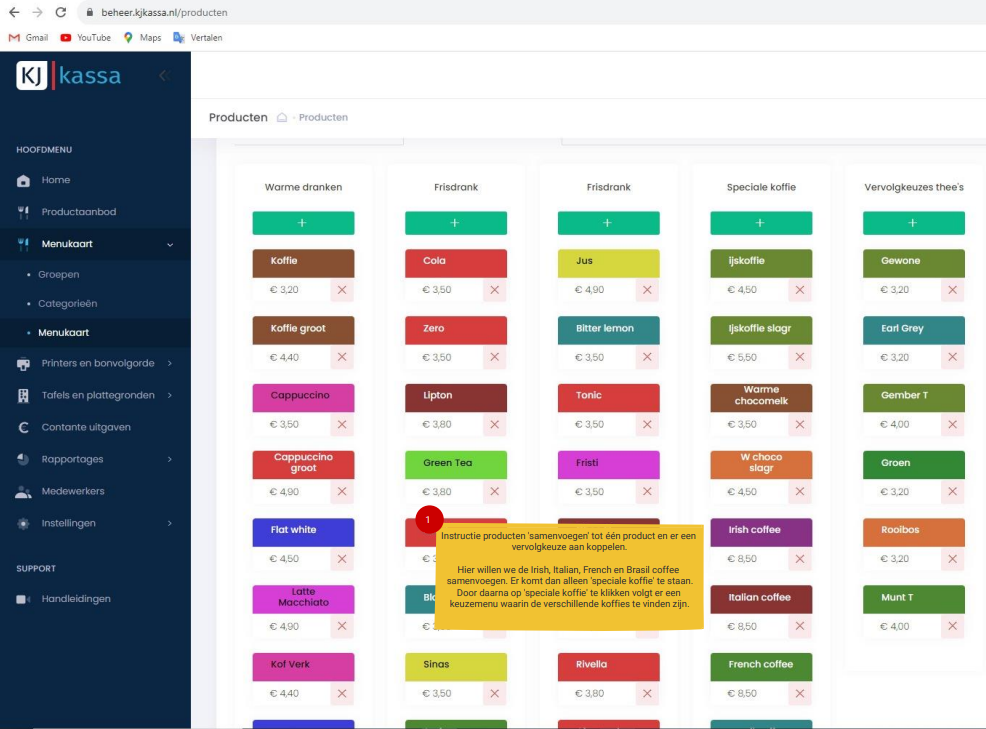 Menukaart aanpassingen
