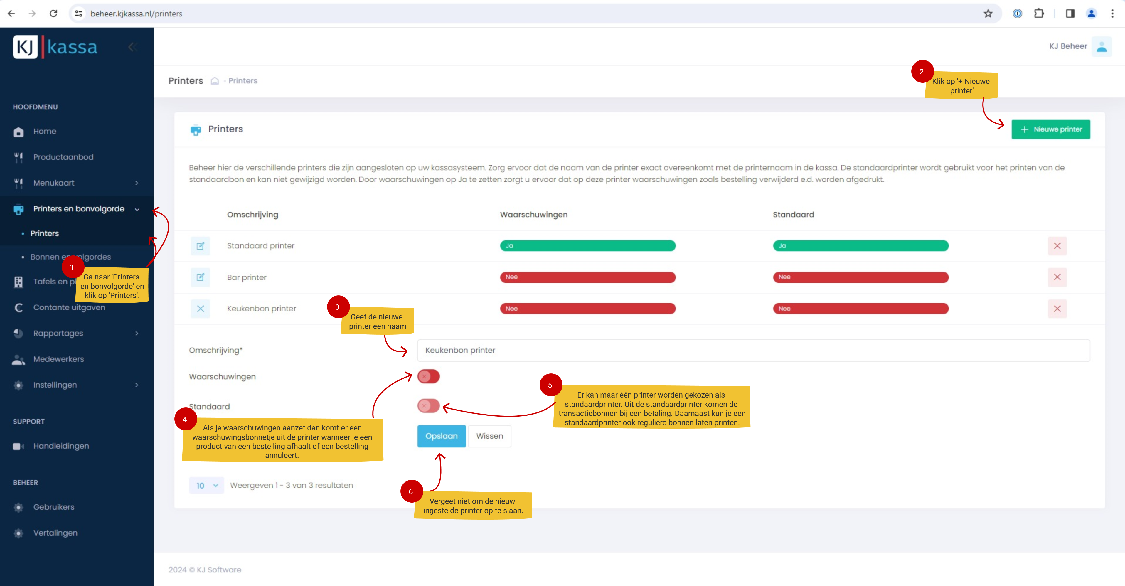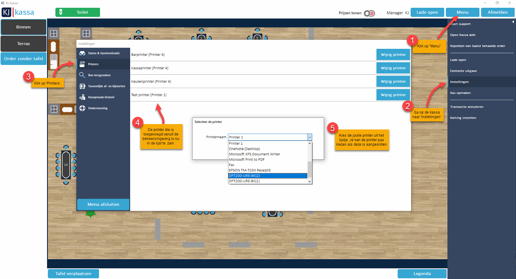 - De printer moet eerst aangesloten zijn voor je de printer kan toevoegen in de kassa software.