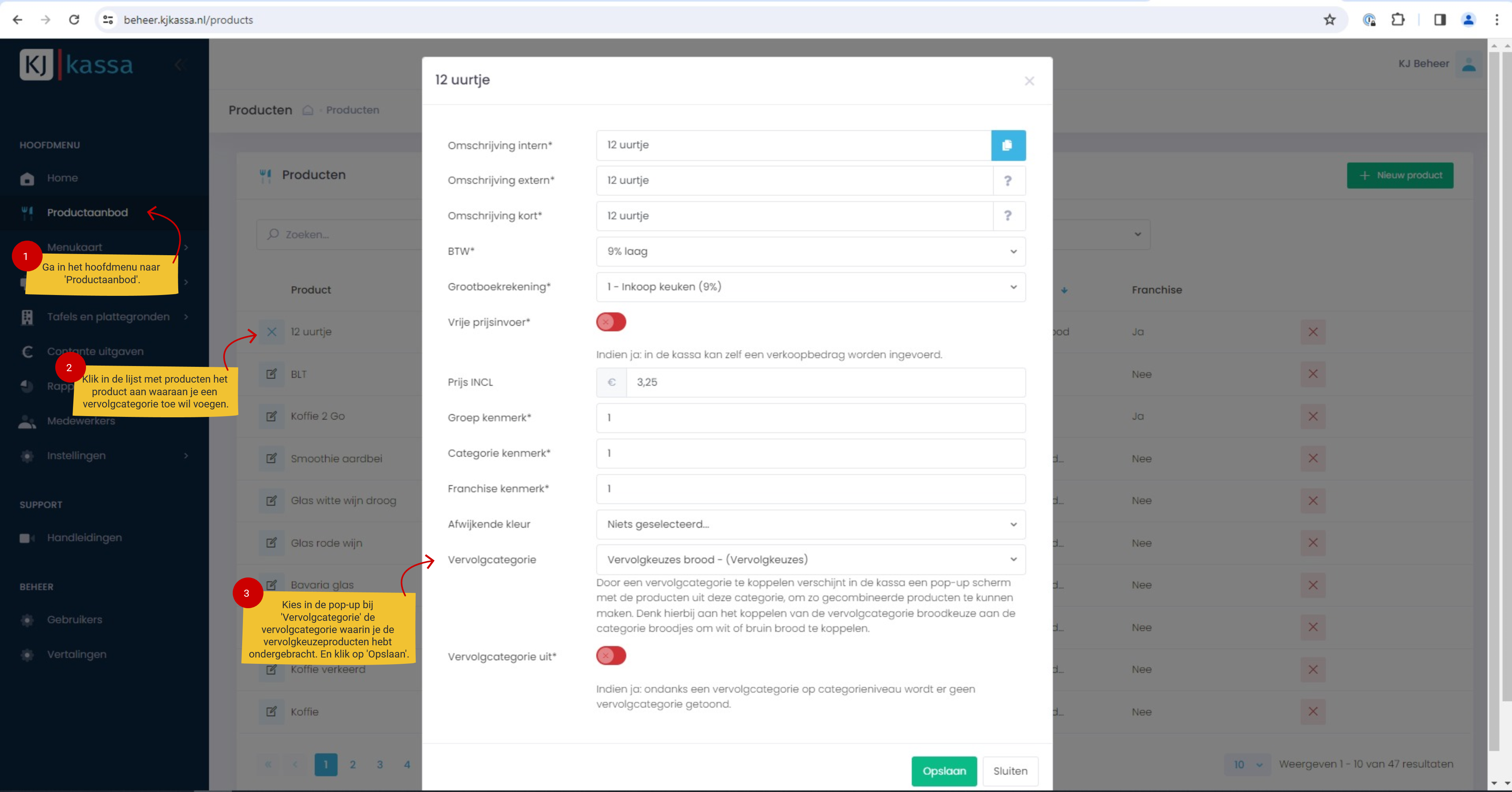 - Het instellen van een vervolgkeuze kan op productniveau en op categorieniveau.